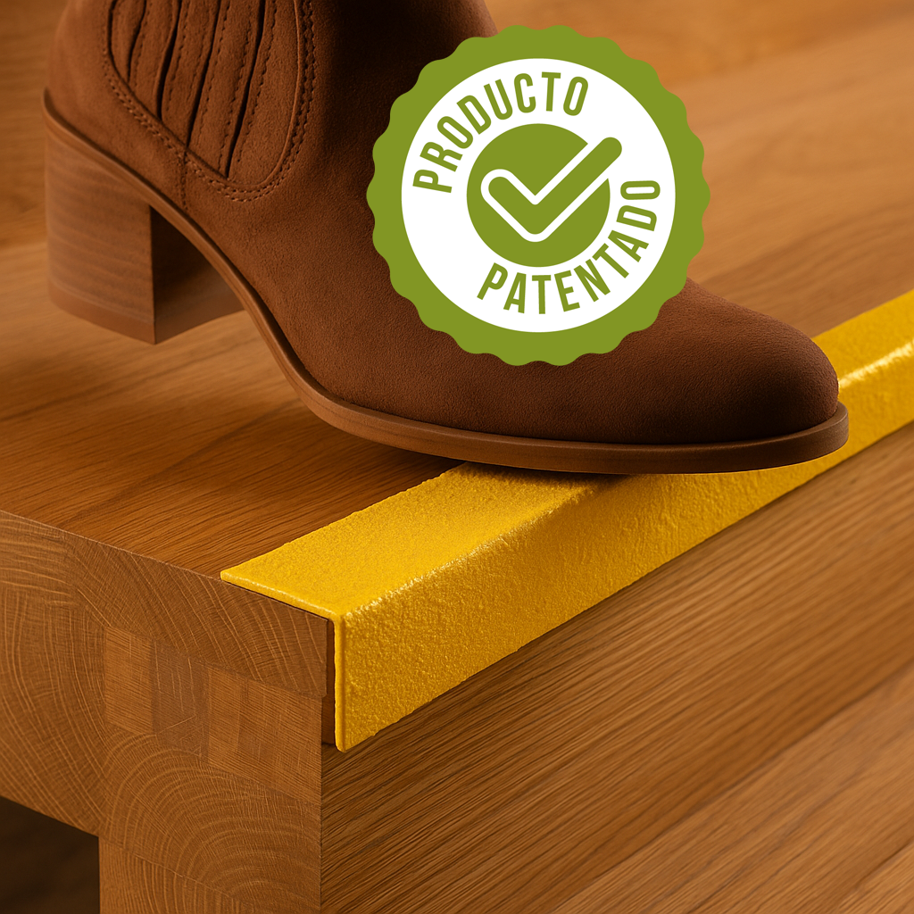 Su instalación es rápida y su diseño discreto pero funcional se adapta a cualquier tipo de escalón. Con patente registrada, esta solución única supera ampliamente a cualquier producto similar del mercado, garantizando durabilidad, confianza y estilo en un solo paso.
