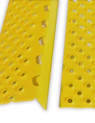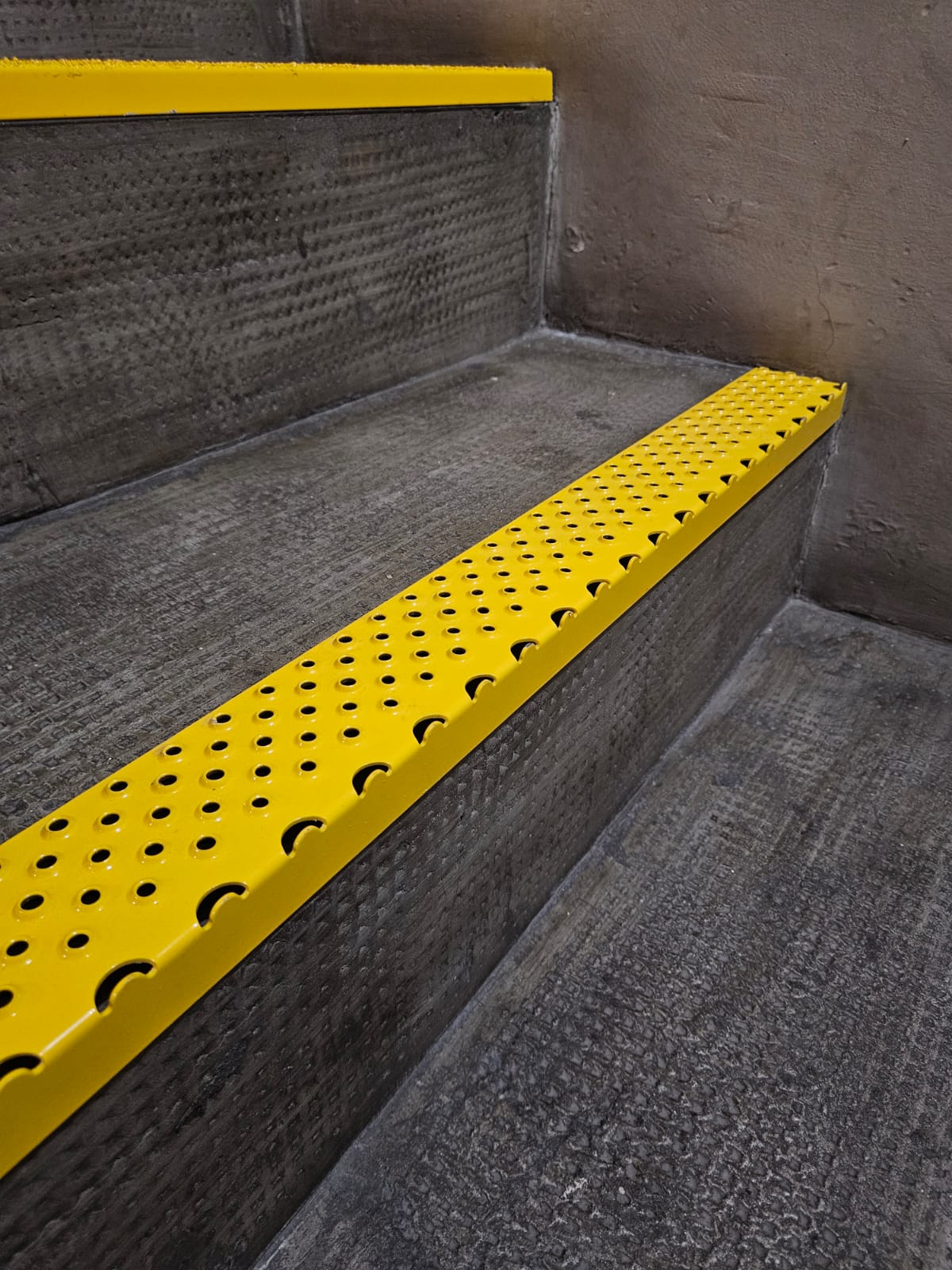El GUARDACANTO metálico es ideal para proteger contra posibles roturas los perfiles de escalones, además de proporcionar en el extremo de los mismos un complemento de adherencia al tránsito adicional anti resbalo.